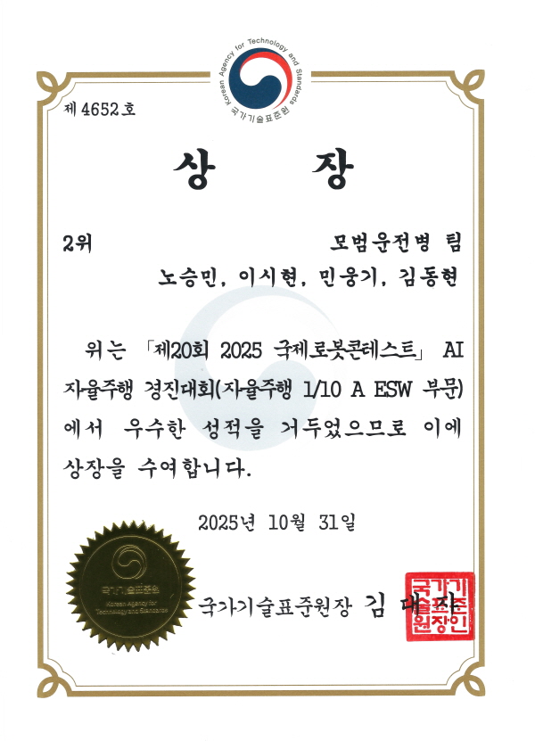[공지] 2025 국제로봇콘테스트 AI 자율주행 2위 수상[대구로봇학원][대구코딩학원] 2025-12-05