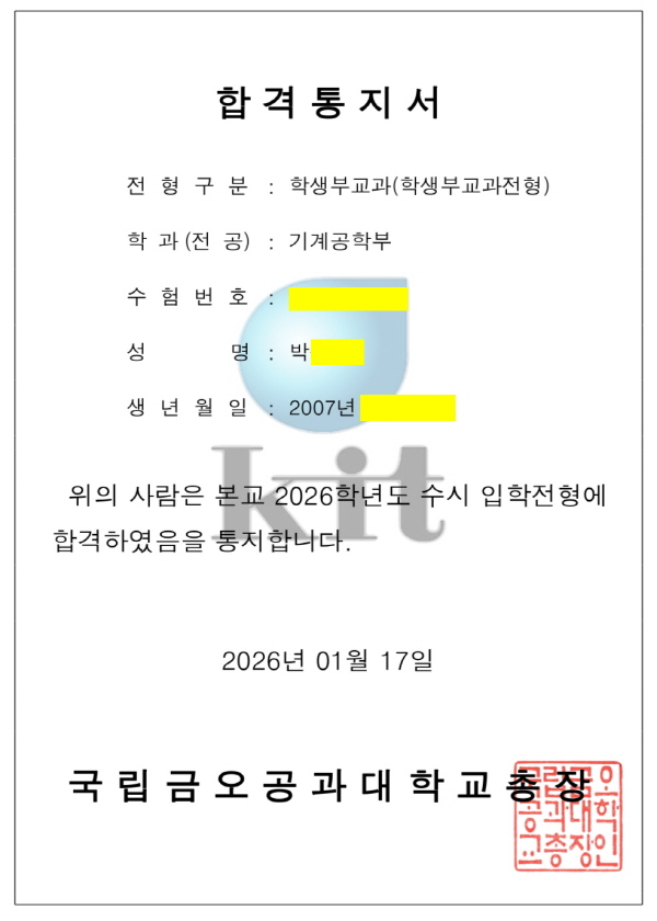 금오공대 기계공학부 합격을 진심으로 축하합니다!