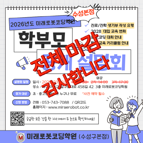 [공지] 2026년 미래로봇코딩학원 학부모공개 설명회 개최[대구코딩학원][대구로봇학원]
