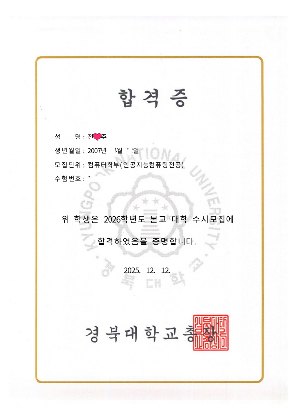 전○주 학생의 합격을 진심으로 축하합니다 . ??
